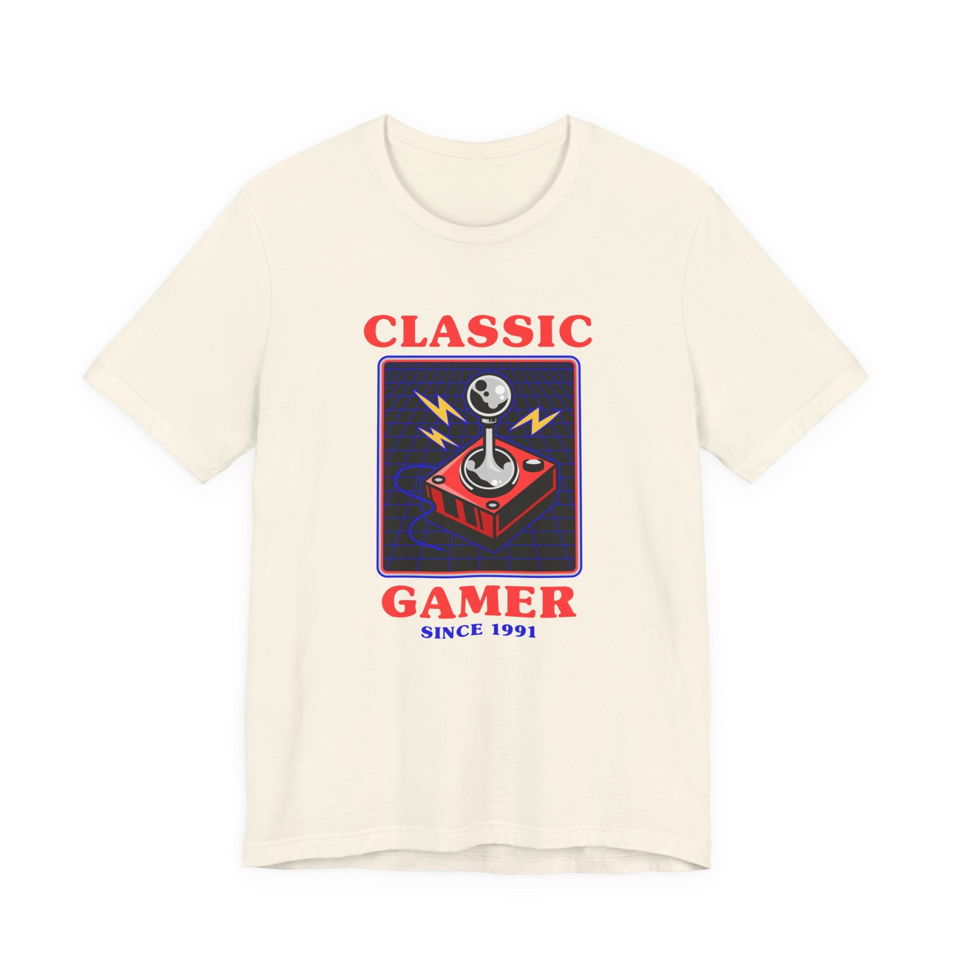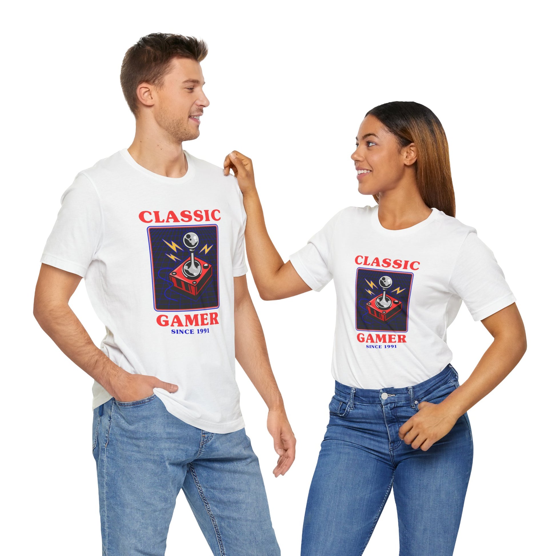 This vintage-inspired T-Shirt features a joy stick design from the late 80s early 90s, giving off a nostalgic and retro vibe. Perfect for gamers and 80s/90s enthusiasts, this tee is great for casual wear or as a statement piece for themed parties or gaming events.
